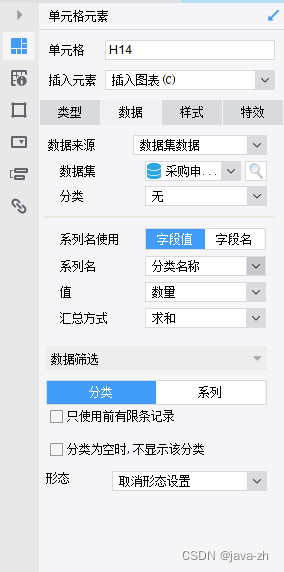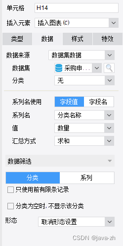 创建完数据集,右键->单元格元素 -> 插入图表 -> 条形图