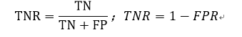 伪阳性率(FPR, false positive rate) 又称错误命中率,假警报率 (false alarm rate),即假阳性站实际阴性的比重。