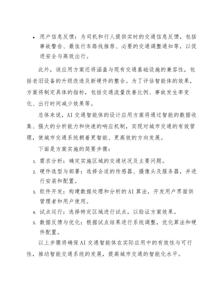 以上步骤将确保AI交通智能体在实际应用中的有效性与可行性,推动智能交通系统的发展,提高城市交通的智能化水平。