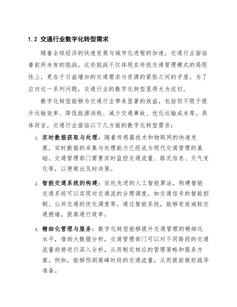 面对未来,数字化转型不仅是提升交通管理和服务水平的必要手段,更是交通行业可持续发展的重要保障。因此,各项政策的制定与技术的研发需同步推进,共同推动交通行业向更高效、更安全、更环保的方向发展。