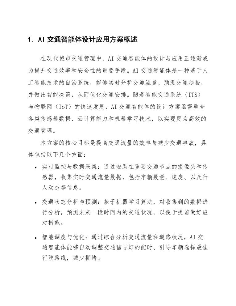 在AI交通智能体的设计应用方案中,其核心价值主要体现在以下几个方面: