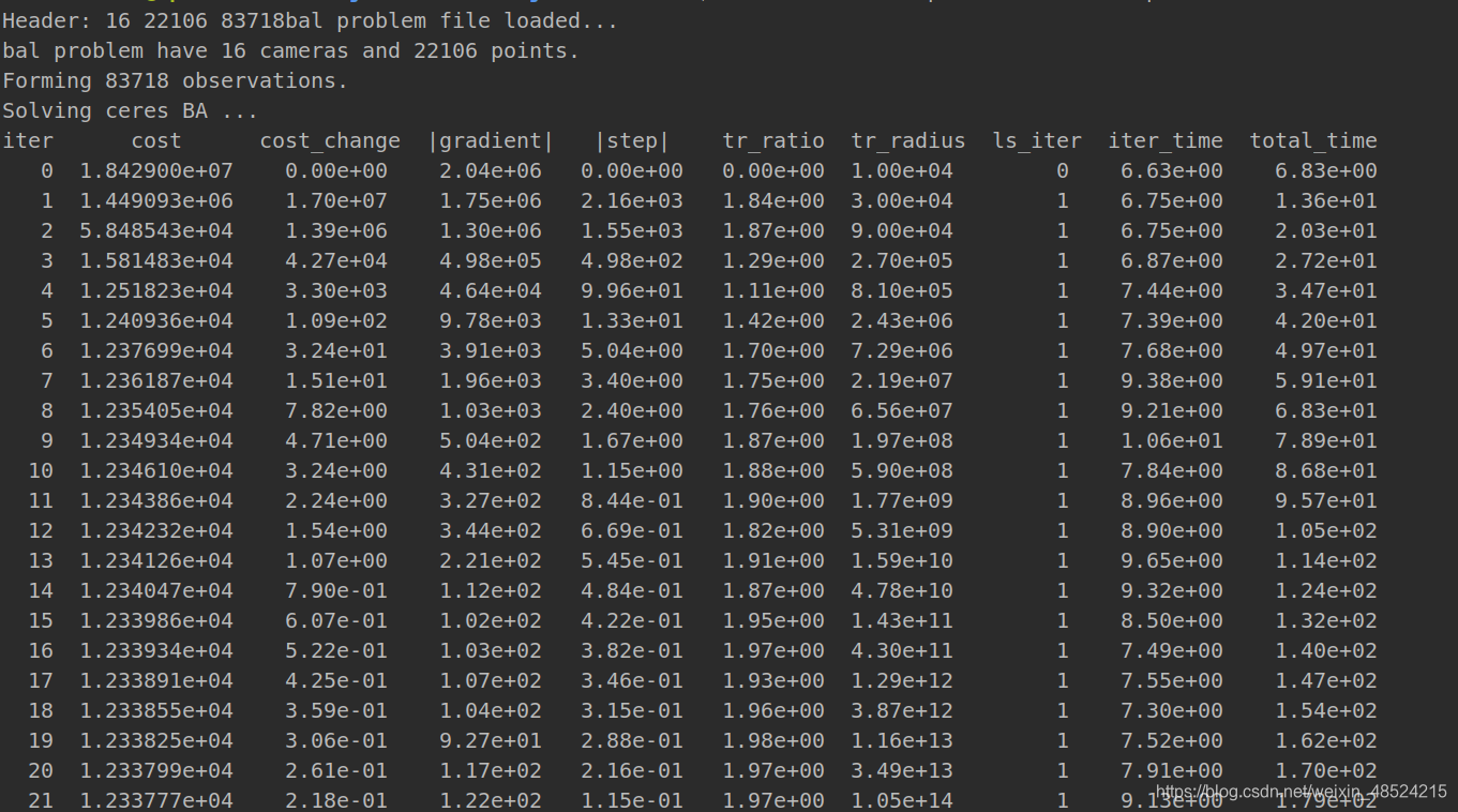 尝试运行示例:Ceres BA (使用BAL数据集)