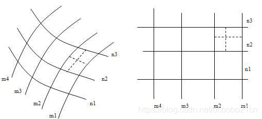 基本原理是:因为球面上一点的位置决定于它的经纬度,所以实际投影时是先将一些经纬线的交点展绘在平面上,再将相同的经纬度的点连成经线,相同的纬度的点连成纬线,构成经纬网。有了经纬网以后,就可以将球面上的点,按其经纬度展绘在平面上相应的位置处。图示如下;