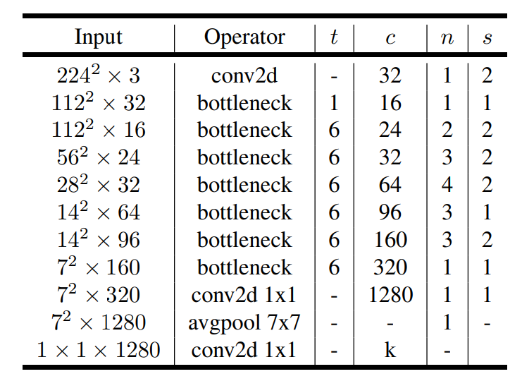 MobileNet-v2 网络结构
