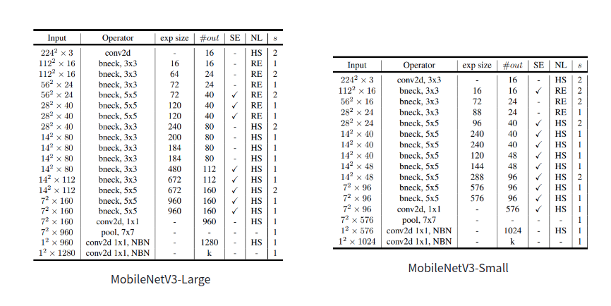 MobileNet-v3 网络结构