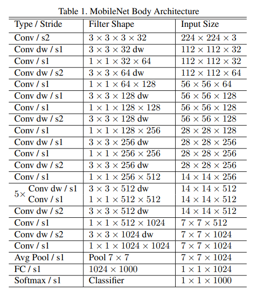 MobileNet-v1 网络结构