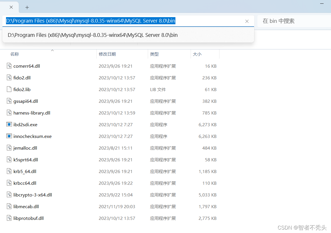1、首先进入自己安装的mysql8的bin目录,复制目录