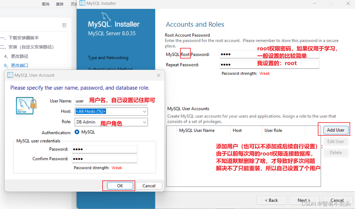 由于之前已安装过mysql5.7版本的,3306(数据库默认端口)被占用,我这里改为3308,以后链接数据库时直接用3308,要记住!!很重要