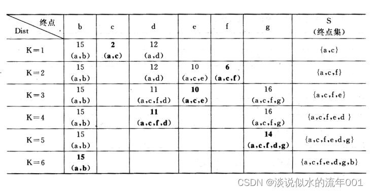 解:设起点为a。可以直接由原始图画出最小生成树,而且最小生成树只有一种(类)!