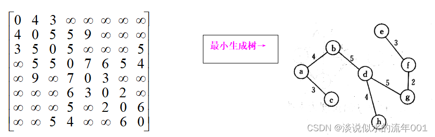 - 写出它的邻接矩阵,并按普里姆算法求其最小生成树;