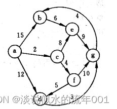 4. 试利用Dijkstra算法求图中从顶点a到其他各顶点间的最短路径,写出执行算法过程中各步的状态。