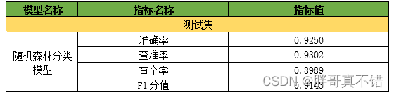 从上表可以看出,F1分值为0.9143,说明模型效果较好。