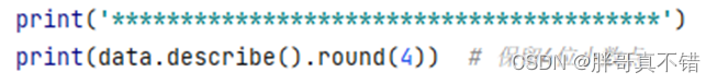 通过Pandas工具的describe()方法来查看数据的平均值、标准差、最小值、分位数、最大值。