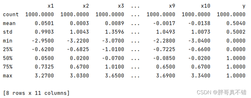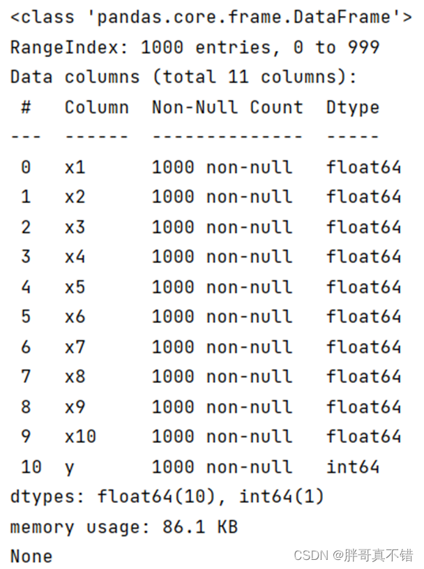 从上图可以看到,总共有11个变量,数据中无缺失值,共1000条数据。