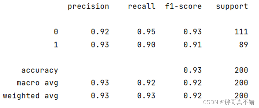 从上图可以看出,分类为0的F1分值为0.93;分类为1的F1分值为0.91。