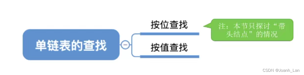 均以带头结点链表为例:按位查找操作。获取表L中第i个位置的元素的值。:按值查找操作。在表L中查找具有给定关键字值的元素。