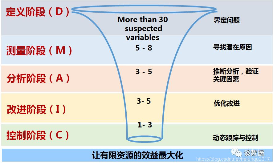 根据六西格玛的DMAIC模型,我们可以将数据质量分析定义为六个阶段: