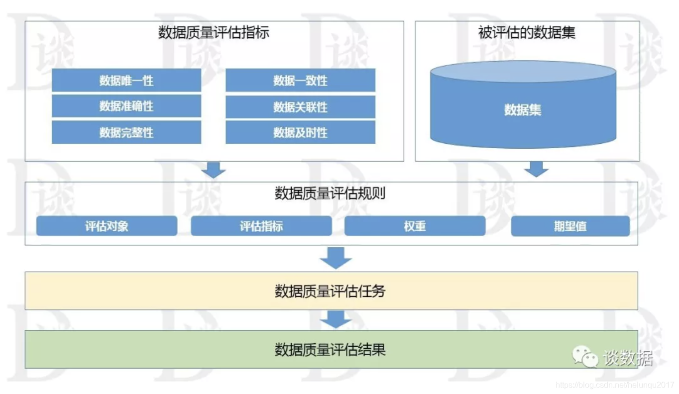 数据质量管理中,首先要区分得出数据质量的好坏 或 划分得开数据质量符不符合要求,如果做不到这点,数据质量管理是无稽之谈;所以数据质量管理的首要条件是有一套 健全的数据质量评估标准与分析流程,然后才有接着的数据质量治理、数据质量监控等等。