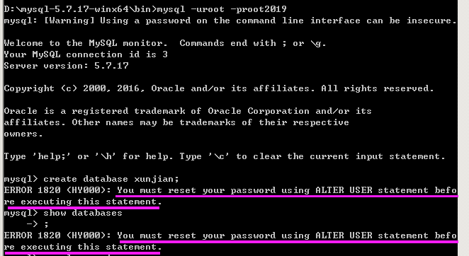 MySQL版本5.7.6版本以前用户可以使用如下命令: