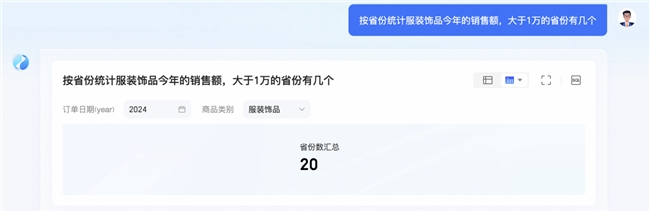如电商平台销售场景中,想了解销售额大于1万的省份这类问题,就体现了智能问数(ChatBI)二次复杂计算能力。