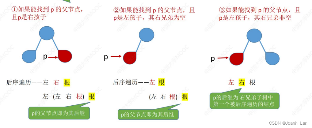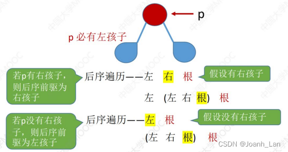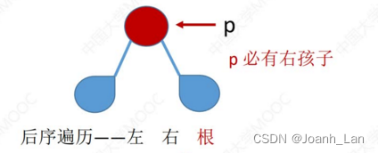 后序遍历中,左右子树中的结点只可能是根的前驱,不可能是后继