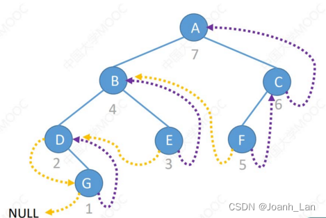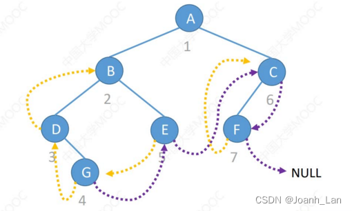在中序线索二叉树中找到指定结点*p的中序后继next①若p->rtag == 1,则next = p->rchild②若p->rtag== 0中序遍历――左根右左根(左根右)左根((左根右)根右)next = p的右子树中最左下结点。