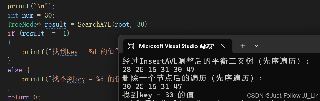 数据结构第七章查找-树表的查找-平衡二叉树(插入+删除+查找)+(C语言完整代码+终端显示+图片)