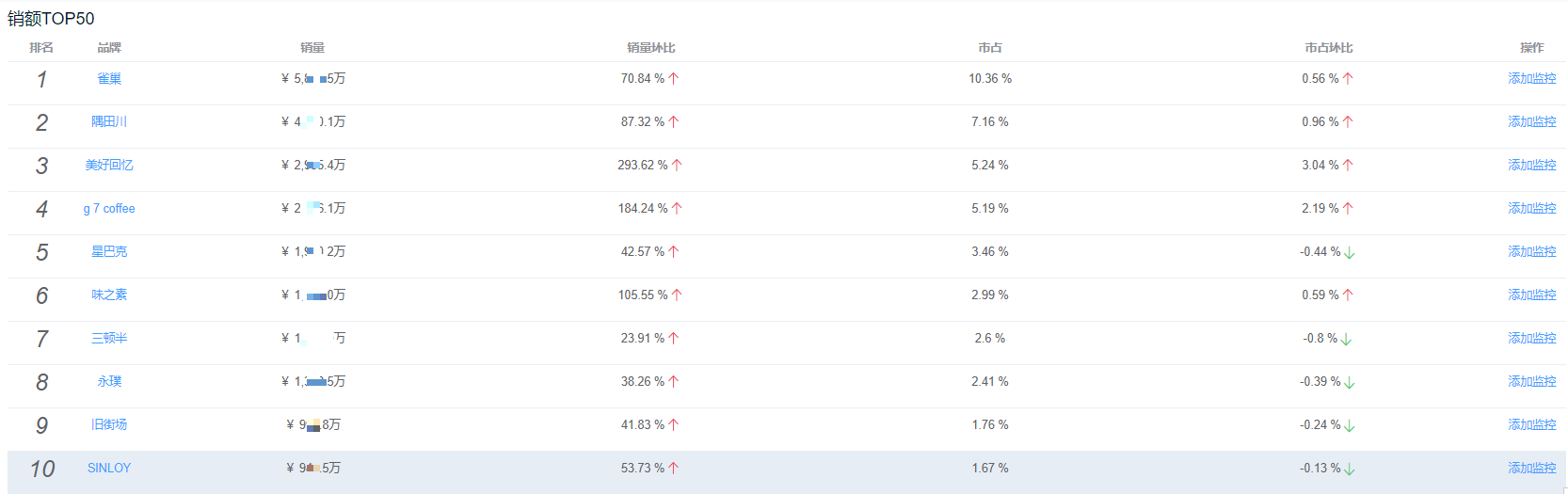 天猫2月咖啡行业数据分析(咖啡品牌销量排行)