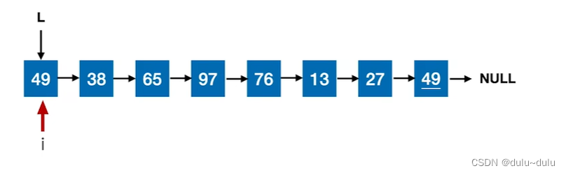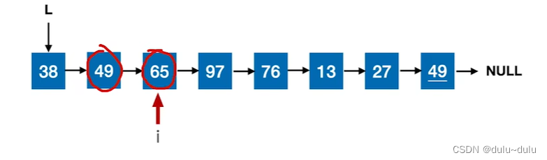 对链表就不能使用折半插入排序了,可以采用直接插入排序。与顺序表的直接插入排序不同,链表在移动元素时,只需要修改几个指针即可,不需要右移动大量的数据元素。虽然移动元素的次数变少了,但是关键字对比的次数依然是O(n^2)数量级,整体来看时间复杂度依然是O(n^2)。