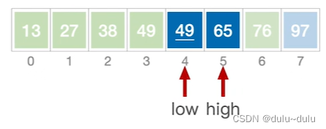 于是high=mid-1;由于low>high,所以折半查找停止,应将 [low,i-1] 内的元素全部右移,并将 A[0] 复制到 low 所指位置。