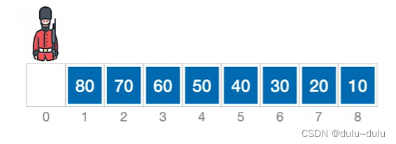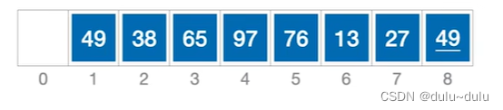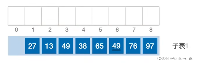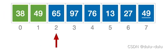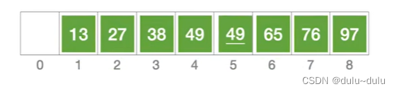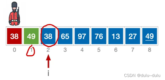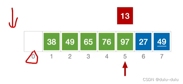 王道书中使用的是带哨兵的方法,即,数据元素从数组的“1”位置开始存放,数组“0”位置放置当前要处理的元素。例如下图,要处理"38"这一数据元素时,"0"位置放置"38":