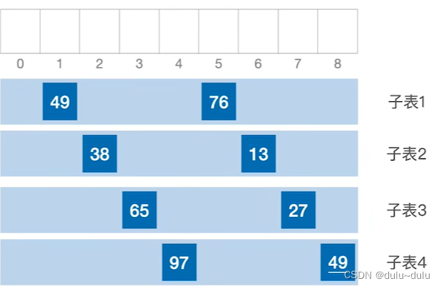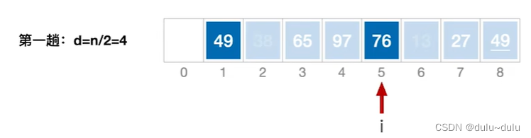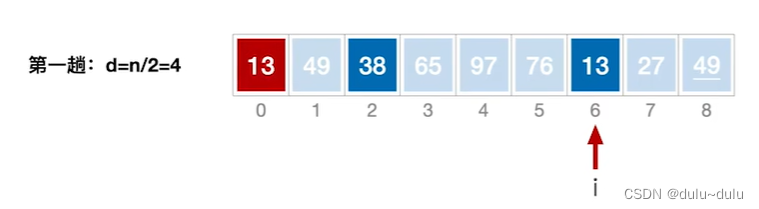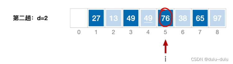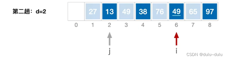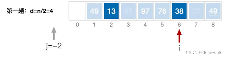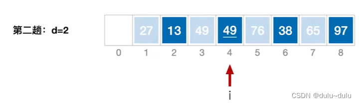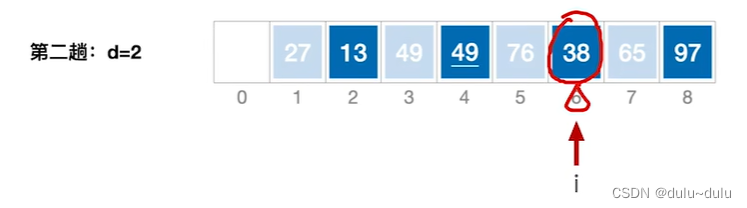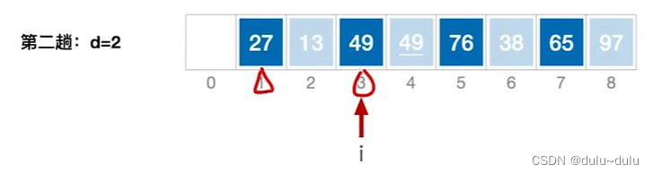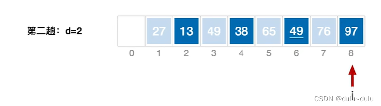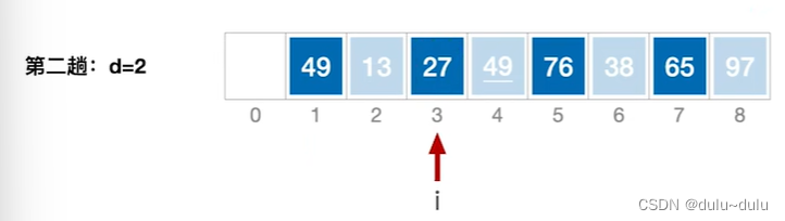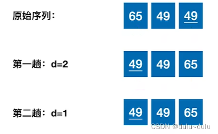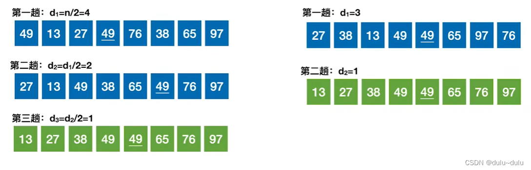 希尔排序:希尔排序的趟数取决于所选的d(增量序列)。不同的增量序列会导致不同的排序趟数。
