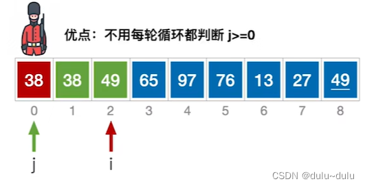 后者写法的优点是不用每轮循环都判断j>=0,循环执行效率更高: