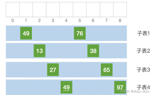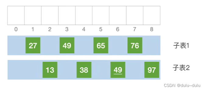 希尔排序:利用顺序存储随机访问的特性,不能使用链式存储。