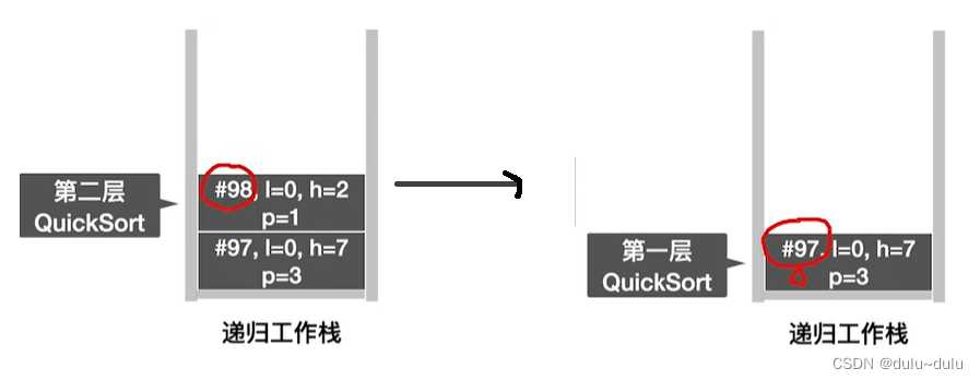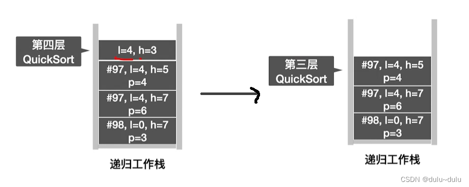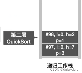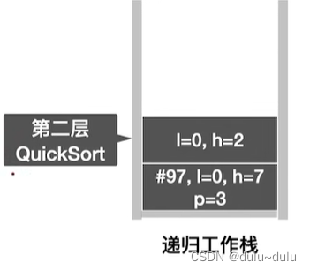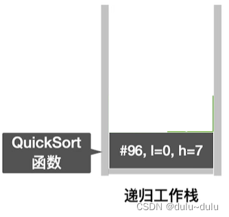 如下图所示,若序列本身就是有序的,那么有n个元素,就需要进行n层的QuickSort函数调用: