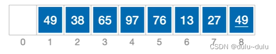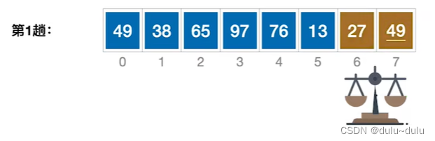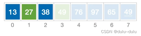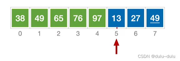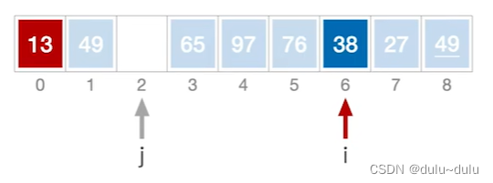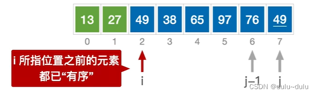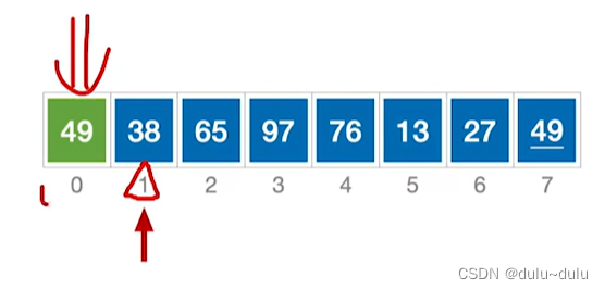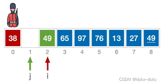 从后往前寻找待插入位置,j=i-1,j=49,由于49>38,所以49向后移动一位