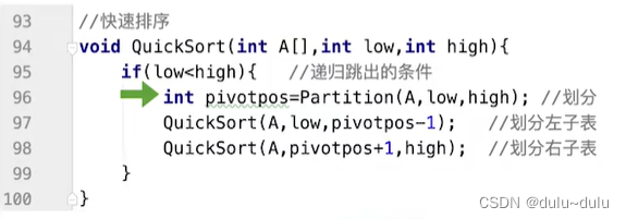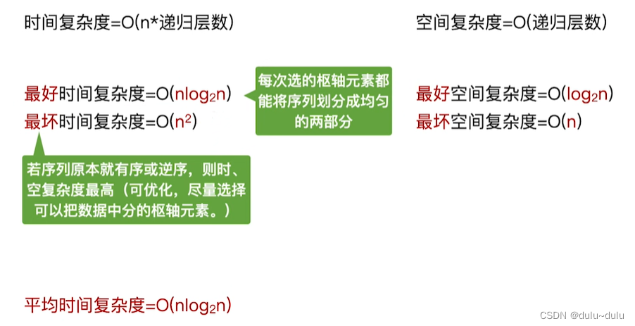 ① 对表中序列进行快速排序的过程,其实就是不断划分表的过程。对于初始序列,需要进行一次划分,即low指针和high指针一起扫描表中的元素,时间复杂度不会超过O(n)。
