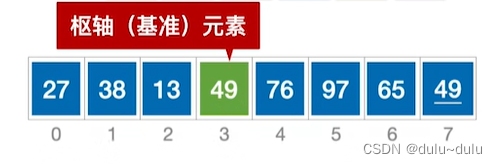 从肉眼上看,若每一次选中的“枢轴”将待排序序列划分为均匀的两个部分,则递归深度最小,算法效率最高。例如下图: