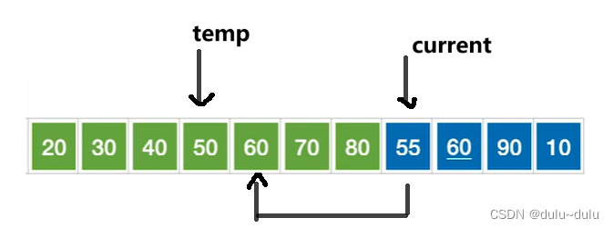 A[j+1]=A[j]; //所有大于temp的元素都向后挪位