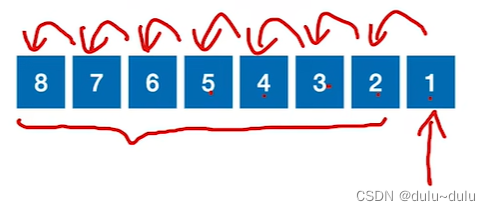 第一趟进行7次比较,第二趟进行6次比较,一次类推,比较次数为: