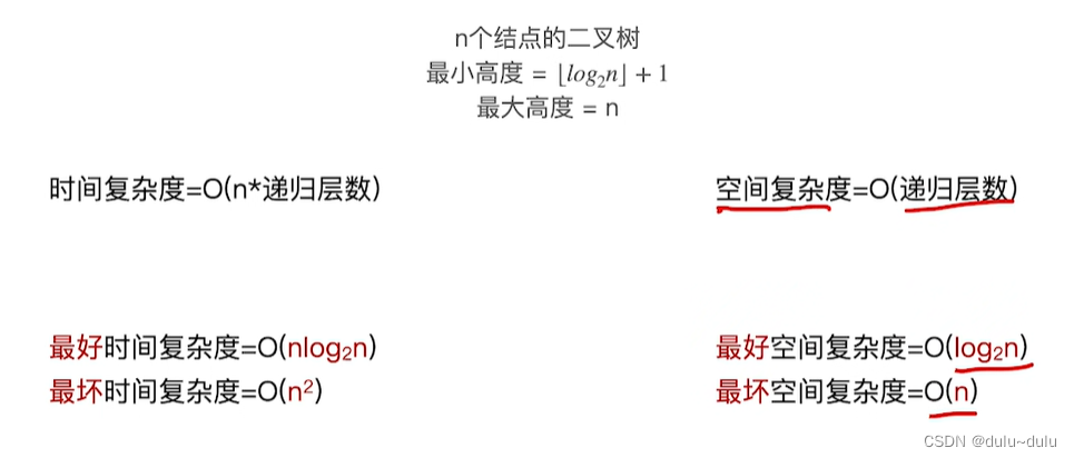 所以快速排序递归调用的层数的计算可以转化为二叉树高度的计算。对于n个结点的二叉树: