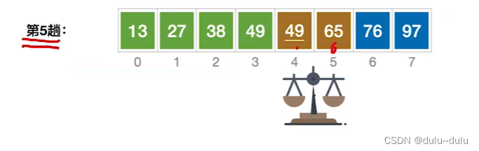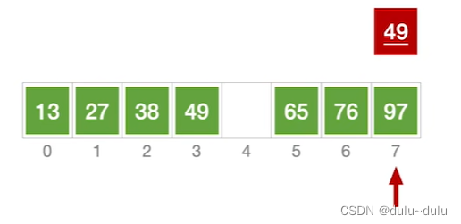 对于49这个元素,同样将比他大的元素向后移动(与他一样大的元素不移动),如下图所示,将49插入到“4”位置: