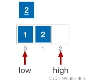 ② 由于high指向的元素<2,所以放到low所指向的位置: