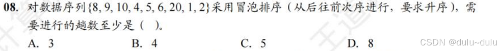 注:408原题中说,对所有尚未确定最终位置的所有元素进行一遍处理称为“一趟”排序,因此一次“划分”≠一趟排序。一次划分可以确定一个元素的最终位置,而一趟排序也许可以确定多个元素的最终位置。