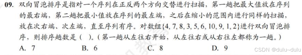 1.下列序列中,( )可能是执行第一趟快速排序后所得到的序列(按从大到小排序和从小到大排序来分别讨论)。