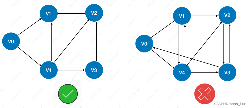 有向⽆环图\color{red}有向⽆环图有向⽆环图:若⼀个有向图中不存在环\color{red}不存在环不存在环,则称为有向⽆环图,简称DAG图\color{red}DAG图DAG图(Directed Acyclic Graph)
