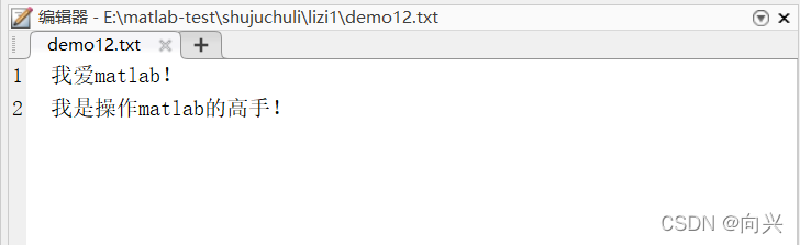 (1)读取数据读取demo12.txt文档,文档内容如下图所示。输入读取语法。(2)写入数据1,编辑数据:string2,fopen打开文档,追写数据;3,fprintf,打印进文档,并添加换行操作;4,fclose(f),关闭f文档;5,此时数据已经添加进去了;6,fopen,读取语法;7,fscanf,在matlab中界面显示出来。...