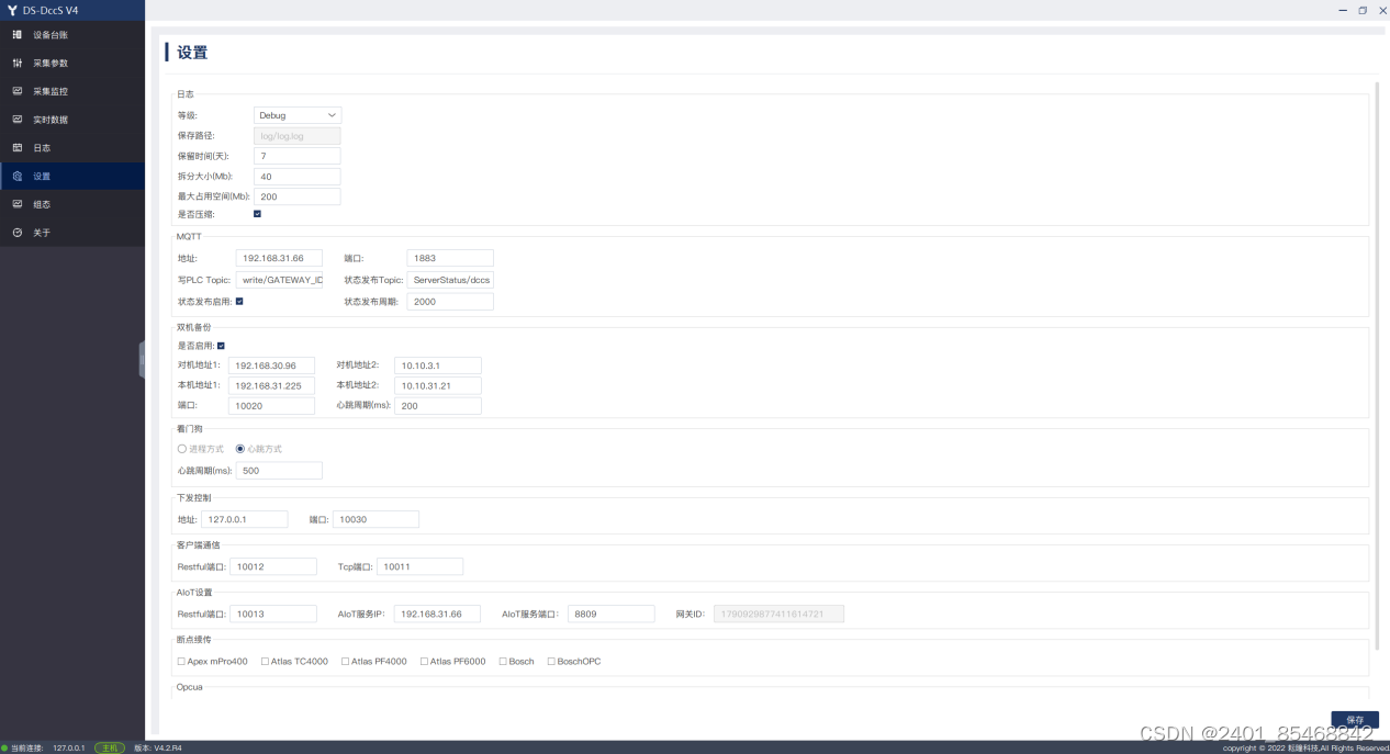2. 设置MQTT连接属性,【设置】 页面中,配置MQTT服务的IP和PORT