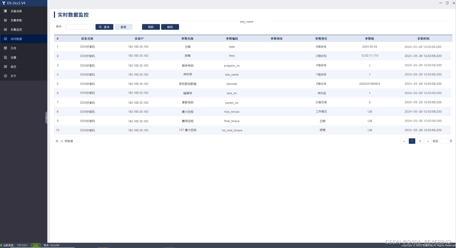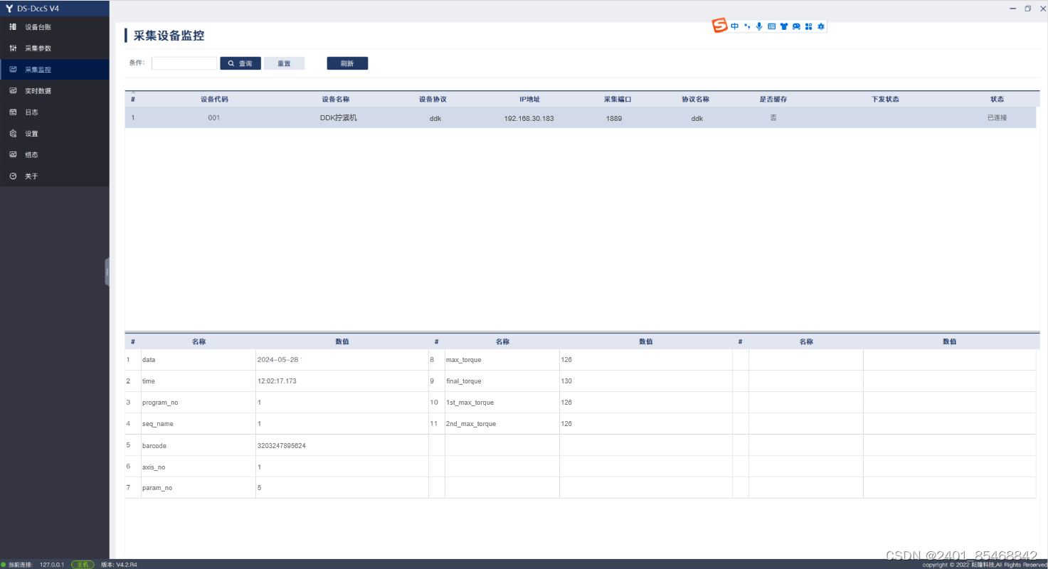 1. 可以通过【采集监控】,查看到设备的连接状态和采集结果