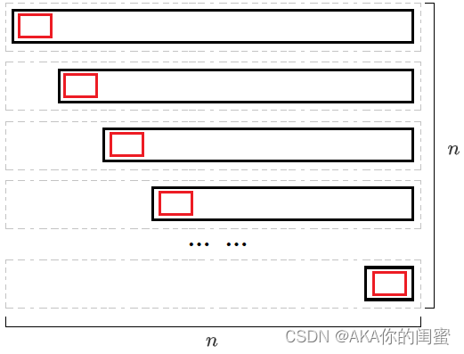 外循环循环 n n n 次,内循环次数从1开始逐次增加。故总循环次数为等差数列之和 1 + 2 + … + n − 1 1+2+…+n-1 1+2+…+n−1。